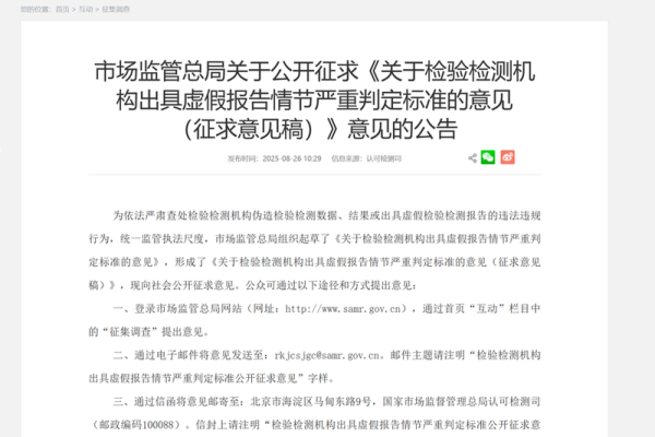 市场监管总局组织起草了《关于检验检测机构出具虚假报告情节严重判定标准的 ...